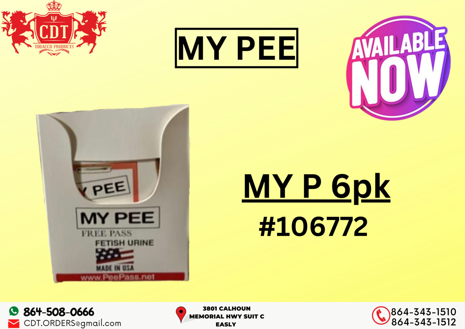 By providing my phone number to CDT INC. I agree and acknowledge that CDT INC may send text messages to my wireless phone number for any purpose. Message and data rates may apply. Message frequency will vary, and you will be able to Opt-out by replying “STOP”.